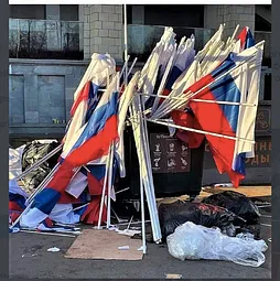 Russian flags dumped in the aftermath of a pro-war rally at the Luzhniki Stadium on the 18th March (Photo via @mbk_center) The futility of Russia’s war…