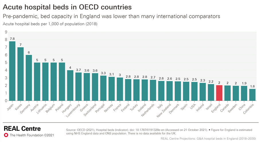 The persistent over-optimism about the achievability and benefits of doing this means we’ve lost far too many hospital beds and have fewer per capita than almost any developed country in the world. So there simply isn’t enough space for the demand that exists. This is partly because of the slow speed of discharging patients - both because of problems with social care and poor processes. But even if these were improved (and social care isn’t going to fixed anytime soon) there is also just a basic capacity problem.