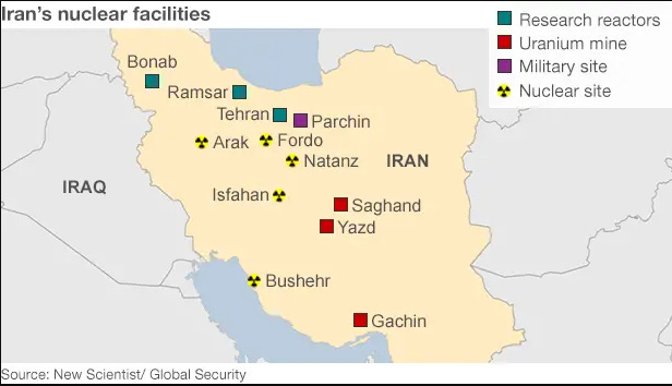 There are many potential targets. This list contains 42 directly related to the nuclear fuel cycle, from extraction of Uranium ore to research to nuclear reactors. These are known to the International Atomic Energy Agency. There are another eight undeclared sites, more related to weapons production, including stored nuclear material and research on explosives. There may be others which have remained secret or at least obscure.