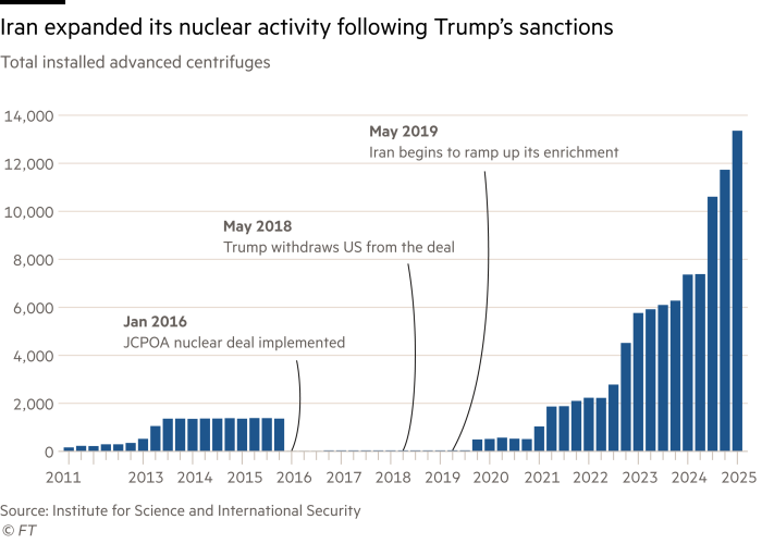During the period of ‘maximum pressure’ in Trump’s first term, which included the assassination of the Iranian militia leader Qasem Soleimani in January 2000, Iran took its own military action. This included sabotaging tankers in the Gulf, missile and drone attacks on Saudi Arabia’s oil infrastructure, and firing missiles at an Iraqi base hosting US soldiers.